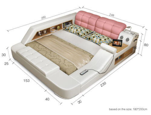 Bed Multifunction Shelf Wardrobe USB Charging Station Decorative Double Leather Beds