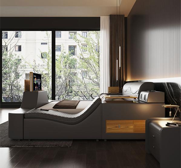 Double, Luxury, Leather Bed, Massage, Upholstery Beds, Modern, Hotel, Bluetooth