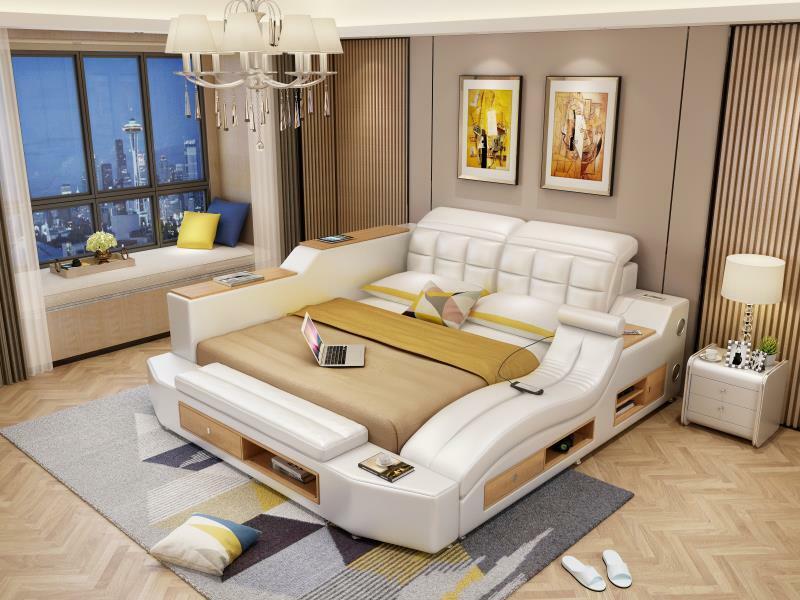 Function Bed Double bed Leather Bed Beds Leather Upholstery Bedroom Marriage
