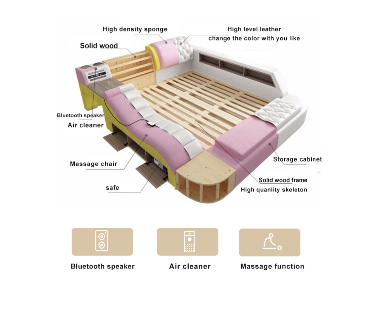 Luxury Double Multifunction Bed Upholstery Water Beds 180x200 Usb Radio Music