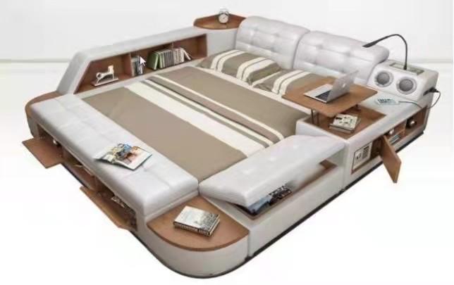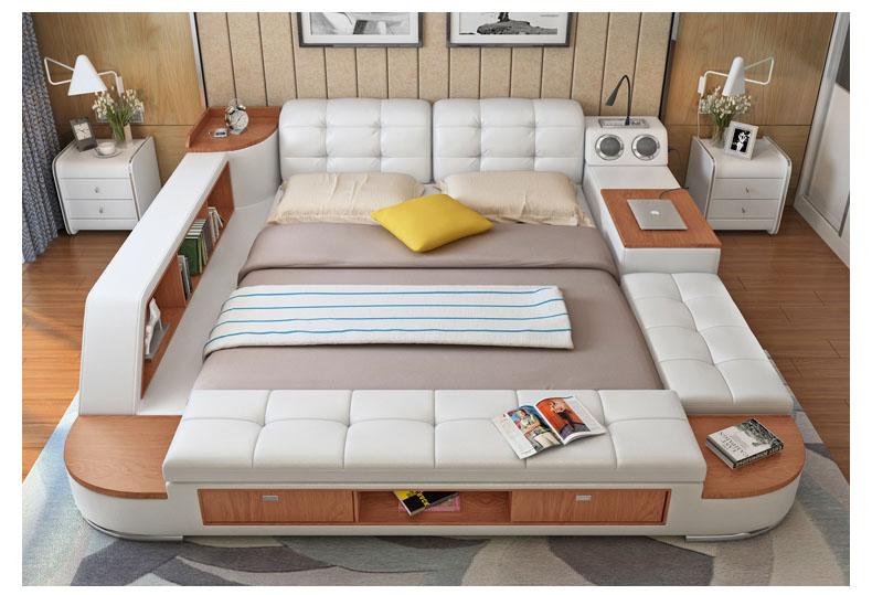 Upholstery Beds Modern Hotel Multifunction new Double Luxury Design Leather
