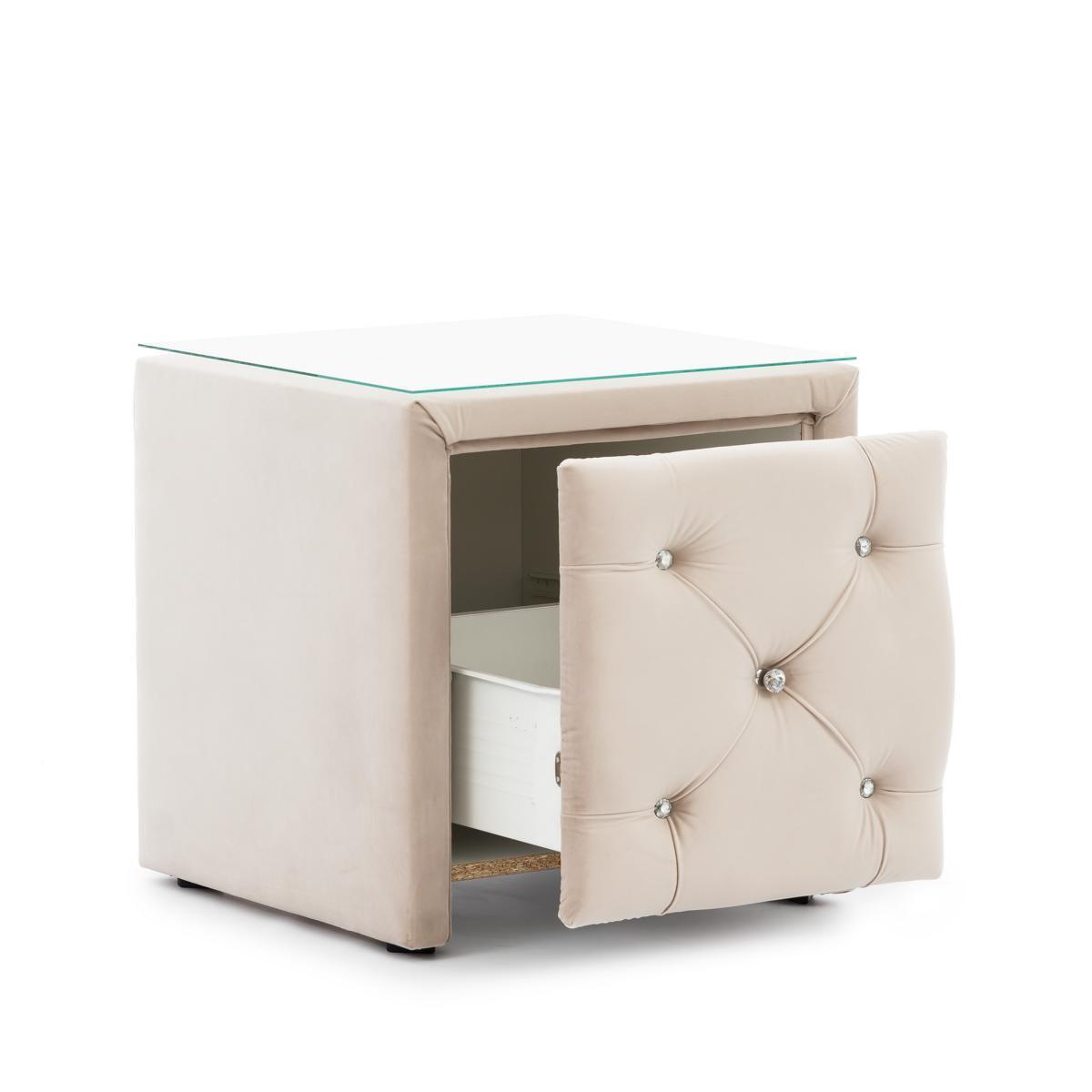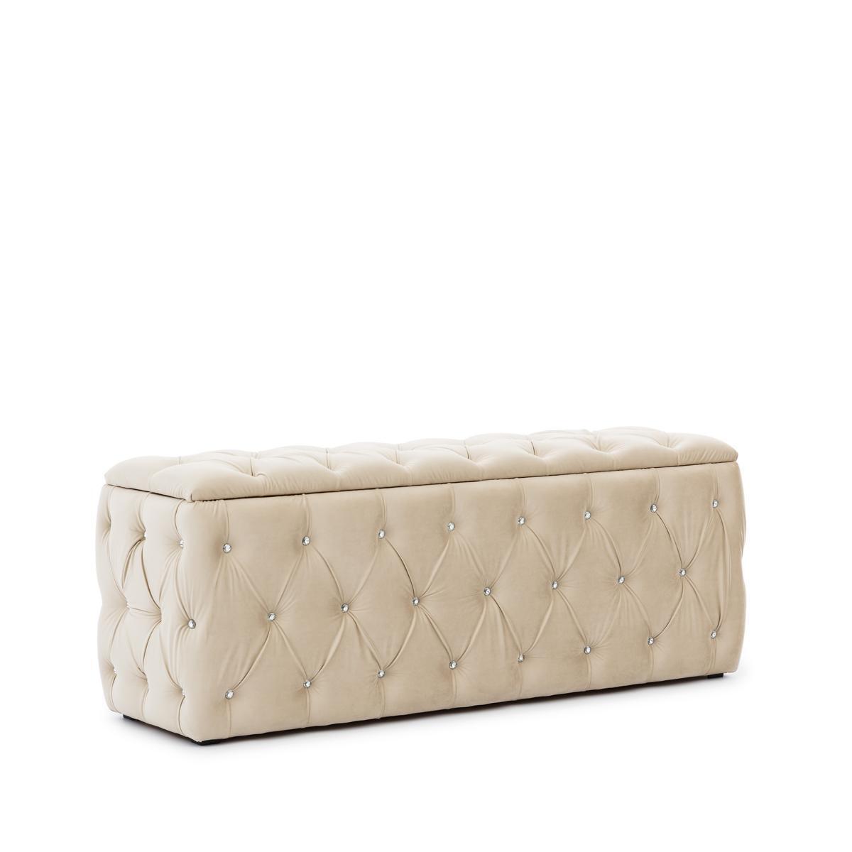 Beige Chesterfield Bedroom Suite Bed Stool 2x Bedside tables