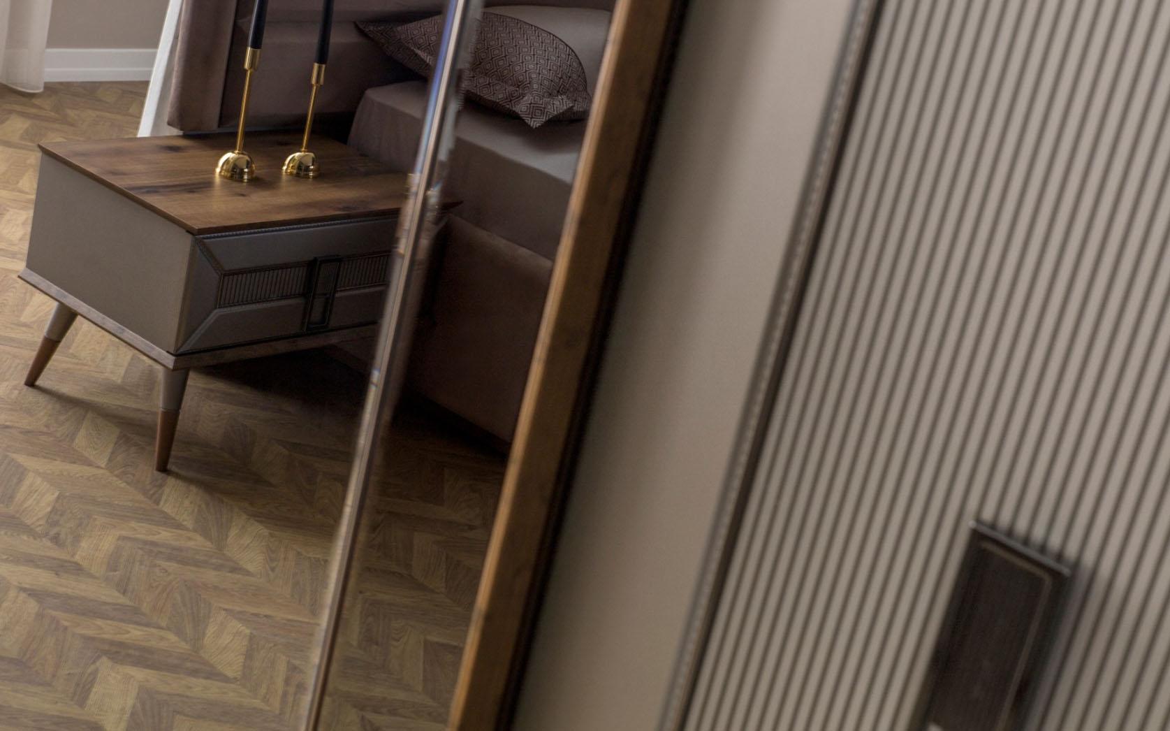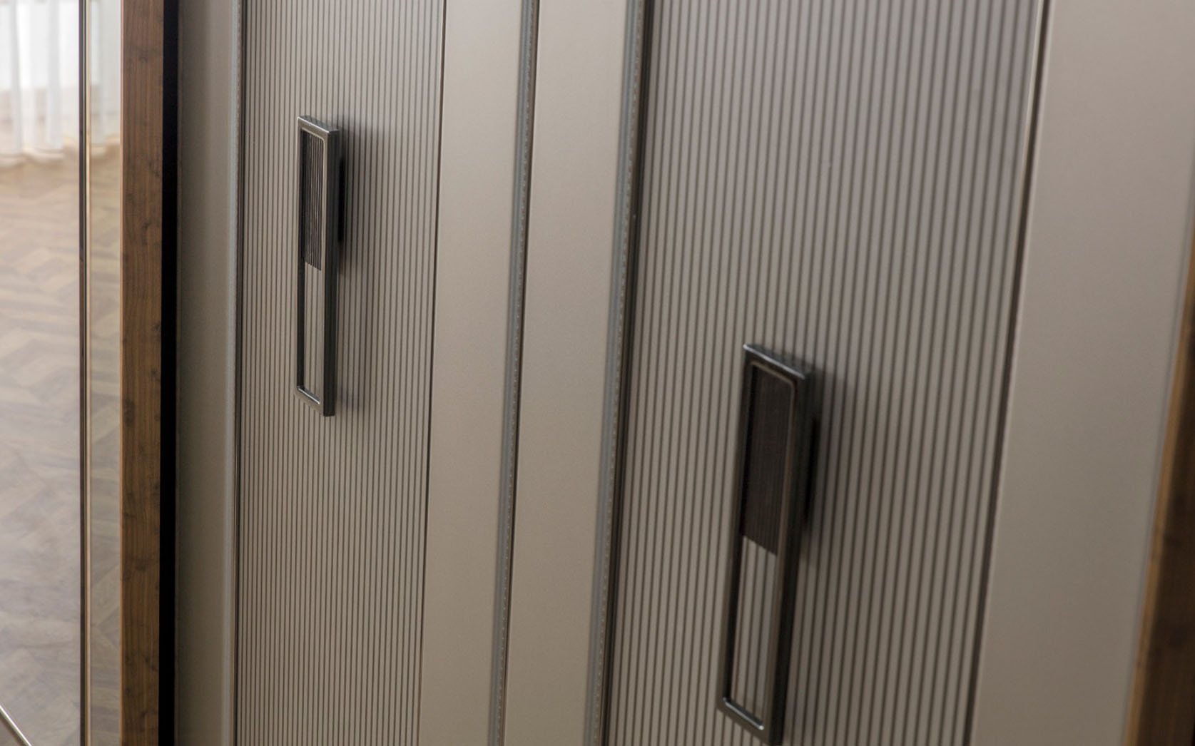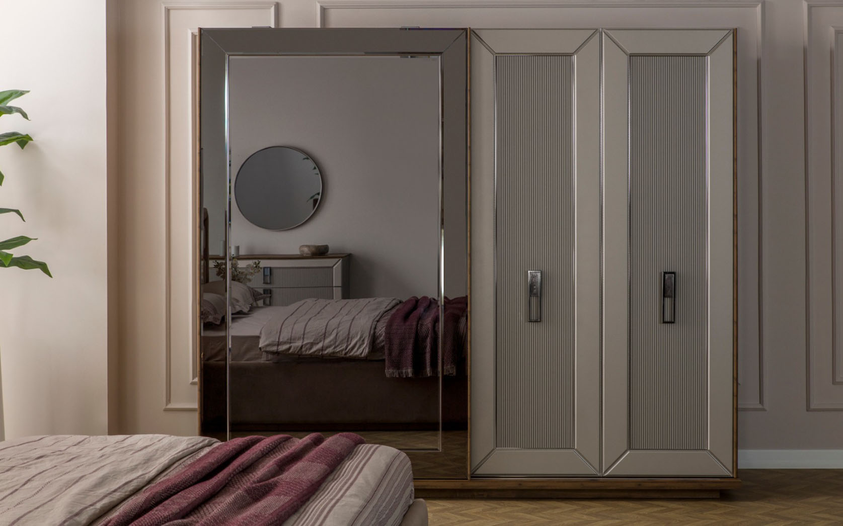 Beige Bedroom Suite Modern Double bed Glass Wardrobe 4pcs