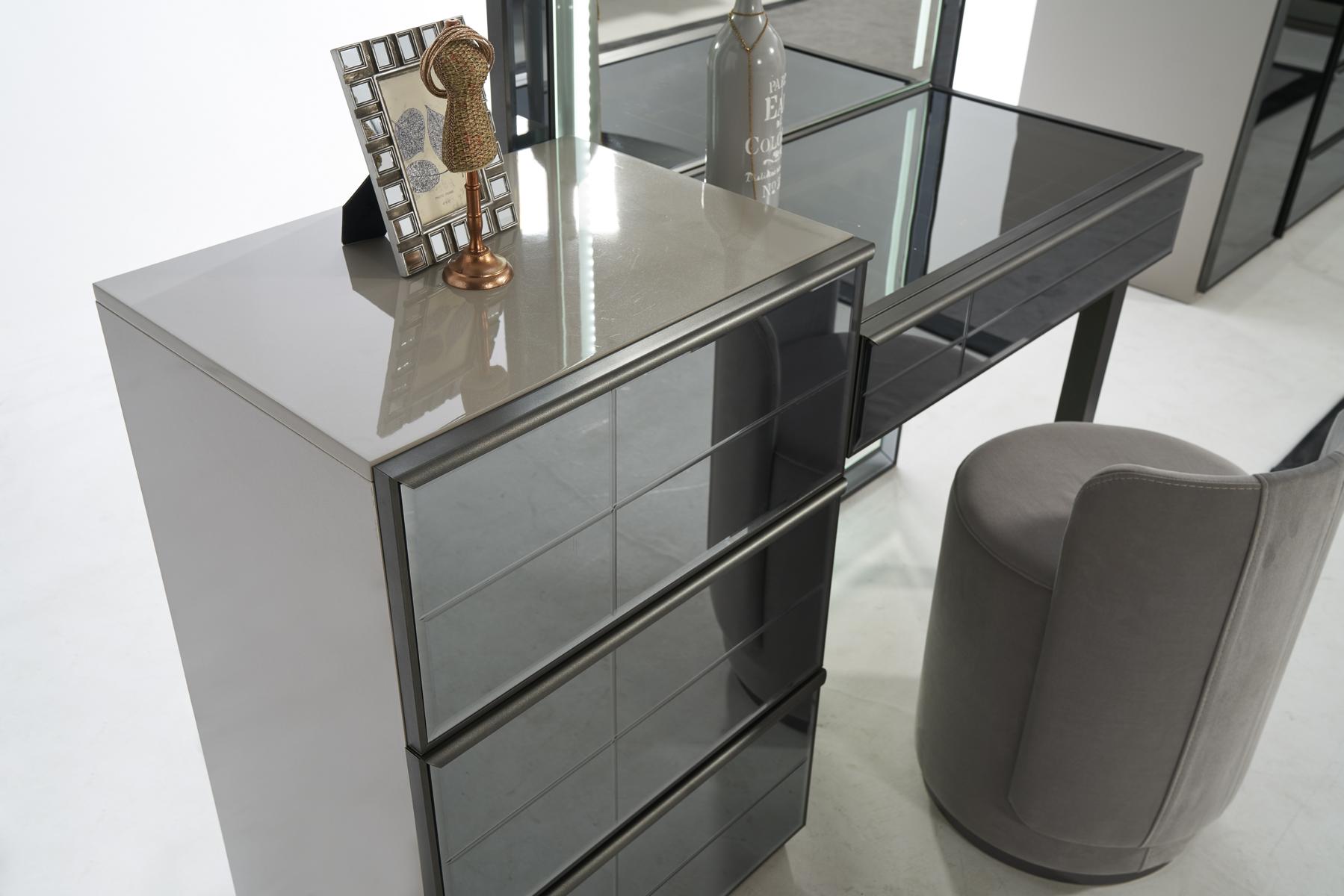 Luxury Glass Bedroom Bed Bedside table Corner Cabinet Dresser Mirror Stool Gray