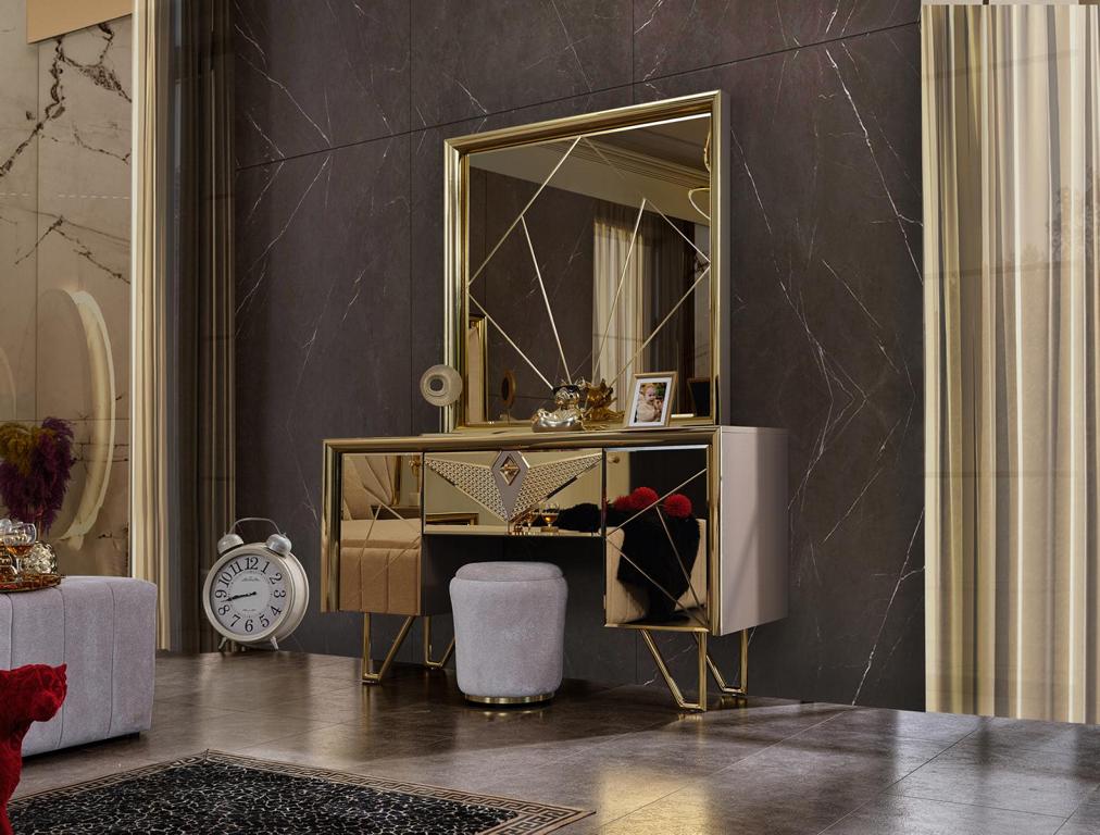 Bedroom set Bed Bedside tables Dressing table with Mirror in elegant Italian style in White Color