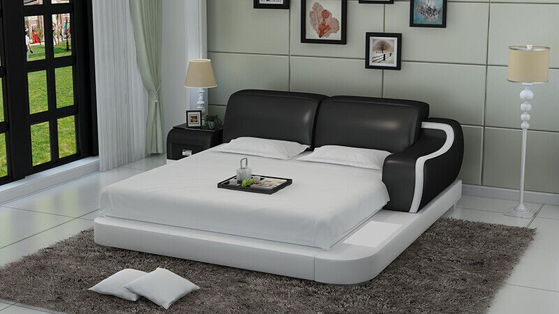 Design Bed XXL Big Beds Hotel Upholstery 200x200 Multifunction Shelf USB Leather