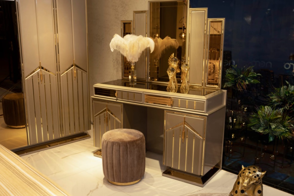 Bedroom set, modern bedroom design, bed, dressing table