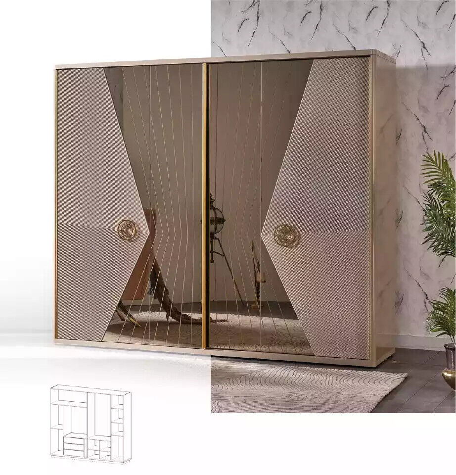 Beige Wardrobe Wooden Cabinets Bedroom Furniture Stainless Steel Cabinet