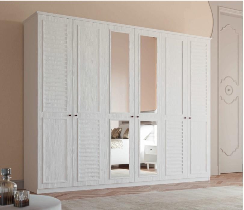 Bedroom Furniture Wood Wardrobe Style Wardrobe White Cabinets 6 doors