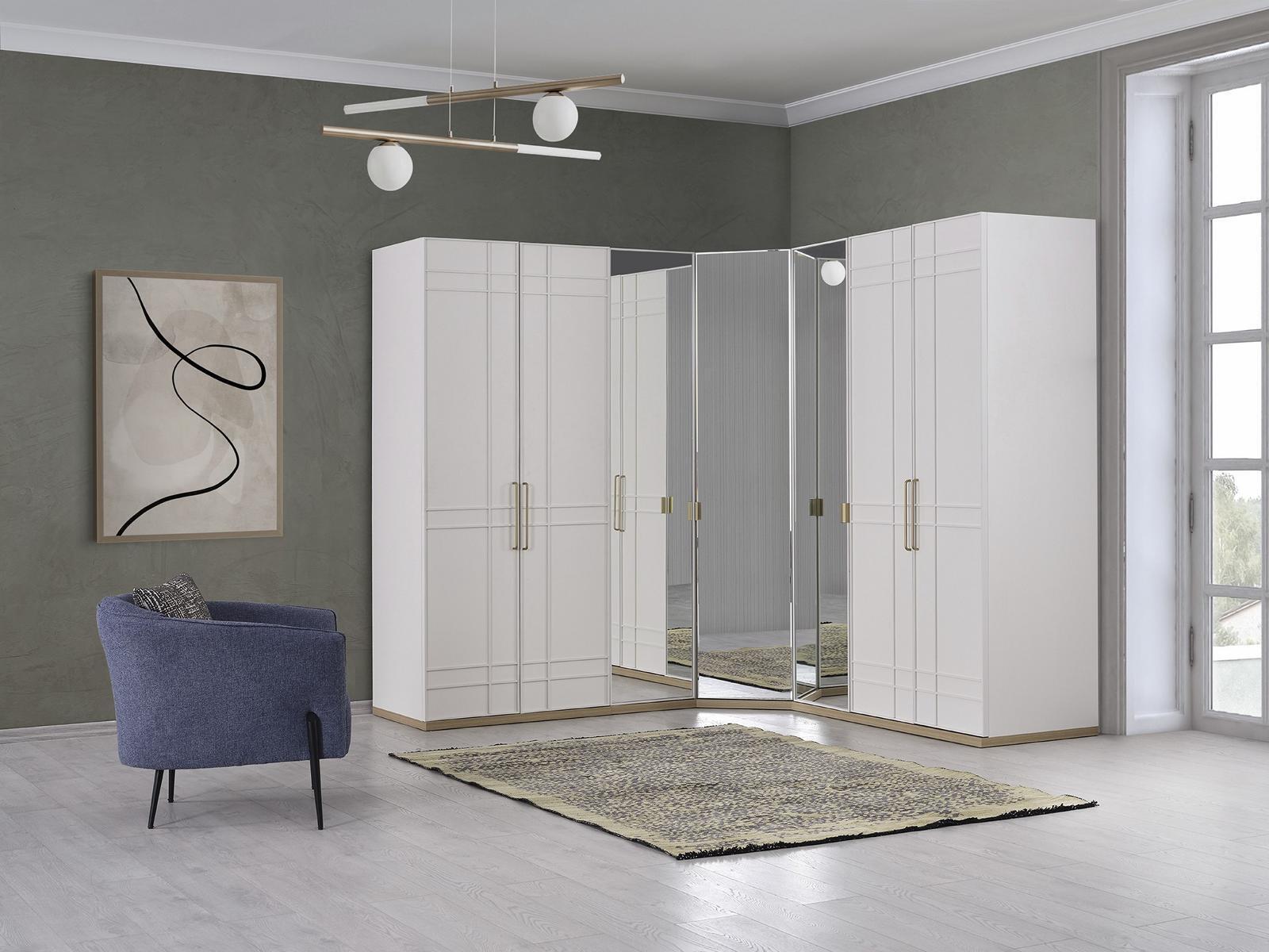 Corner cabinet Wardrobe Cabinets White Wood Mirror 7 doors Big