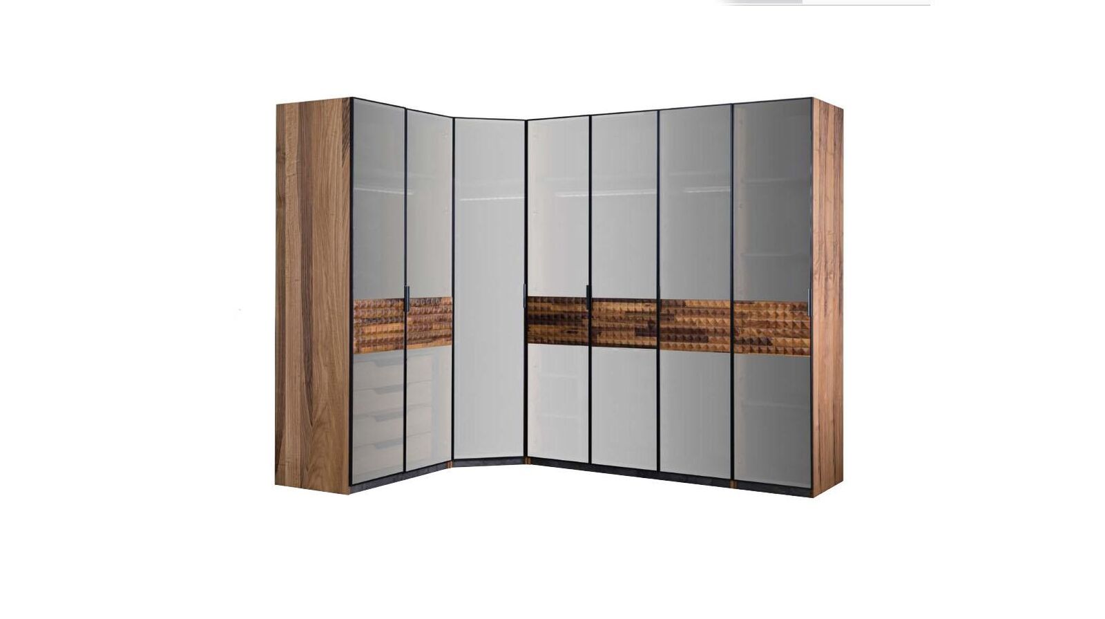 Corner cupboard, bedroom cupboard, wardrobe, wood, brown, mirror, big