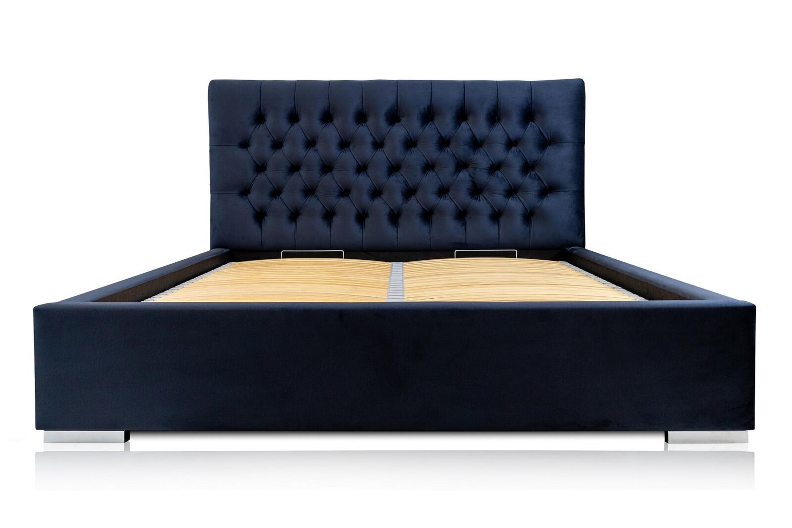 Bed Blue Modern Design Fabric Upholstery Bedroom Double bed Wood Elegant new