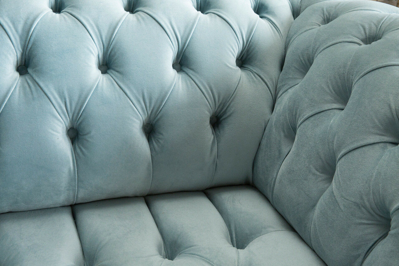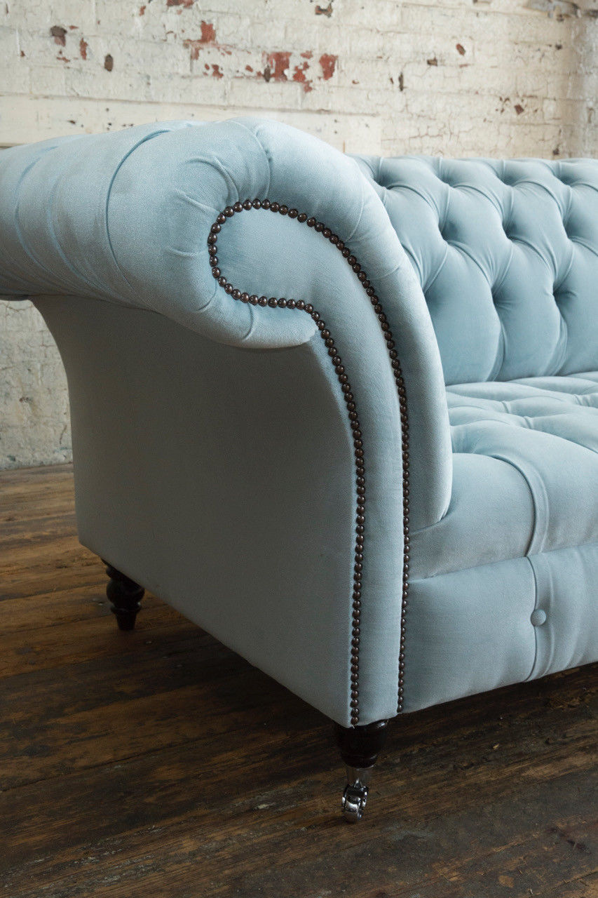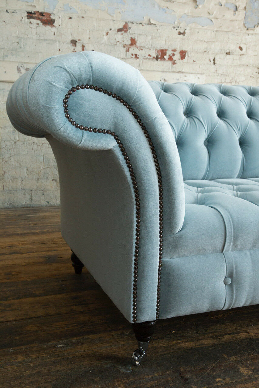 Chesterfield 3 Seater Upholstery Couch Leather Sofa Couches Textile Modern Style Blue