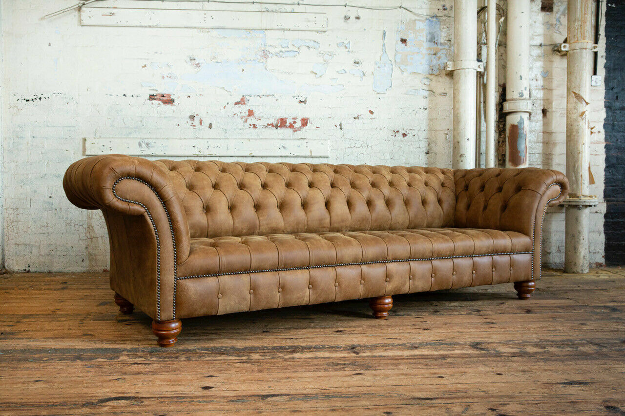 Chesterfield Brown Couch Sofa Upholstery 4 Seater Couches Seat Suite