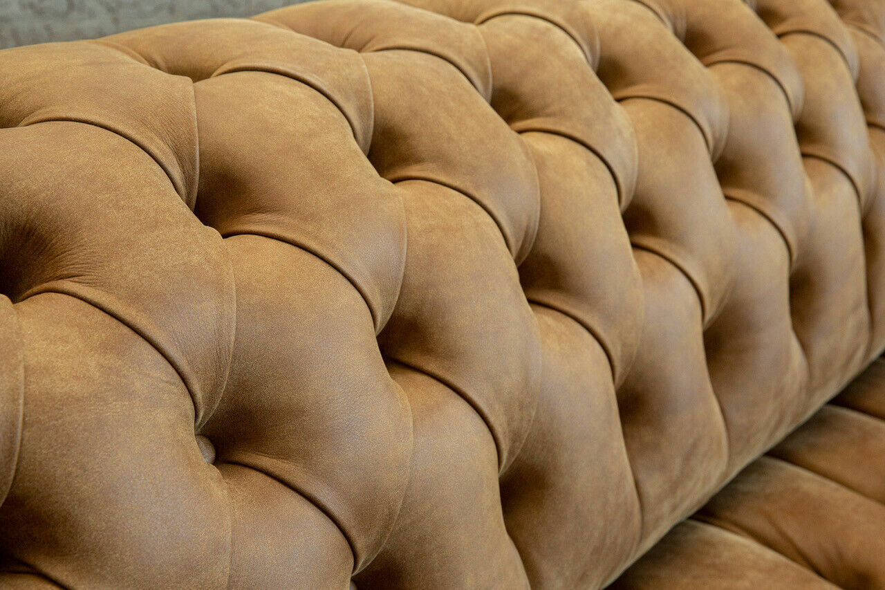 Enhance the elegance of your living space with our Chesterfield Brown Couch Sofa Upholstery 4 Seater Couches Seat Suite. This premium four-seater sofa is designed for comfort and style, providing you with a spacious seating solution for your home. Crafted from high-quality premium imitation leather, this sofa offers both luxury and durability. You have the option to customize the material from a selection including fabric, genuine leather, velvet fabric, or stain-repellent fabric to suit your preferences. The dimensions of the sofa are approximately 265 cm in length, 79 cm in height, and 98 cm in depth, with a seat height of about 42 cm and a seat depth of around 64 cm. You can also choose from additional sizes ranging from a 1.5-seater to a 5-seater, with special sizes available upon request. The Italian cowhide used in this sofa adds a touch of sophistication, with options for crystal stones or Swarovski crystal stones to elevate the design. The inner frame made of real wood and spring core support ensure both stability and comfort. Indulge in luxury and style with our Chesterfield Brown Couch Sofa Upholstery, and create a chic focal point in your home. Contact us for customizations in color or size to make this sofa truly yours.