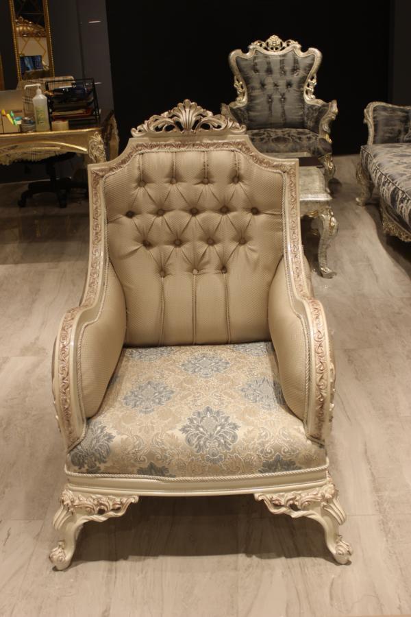 Modern sofa set with trendy upholstered furniture and comfortable armchair and coffee table