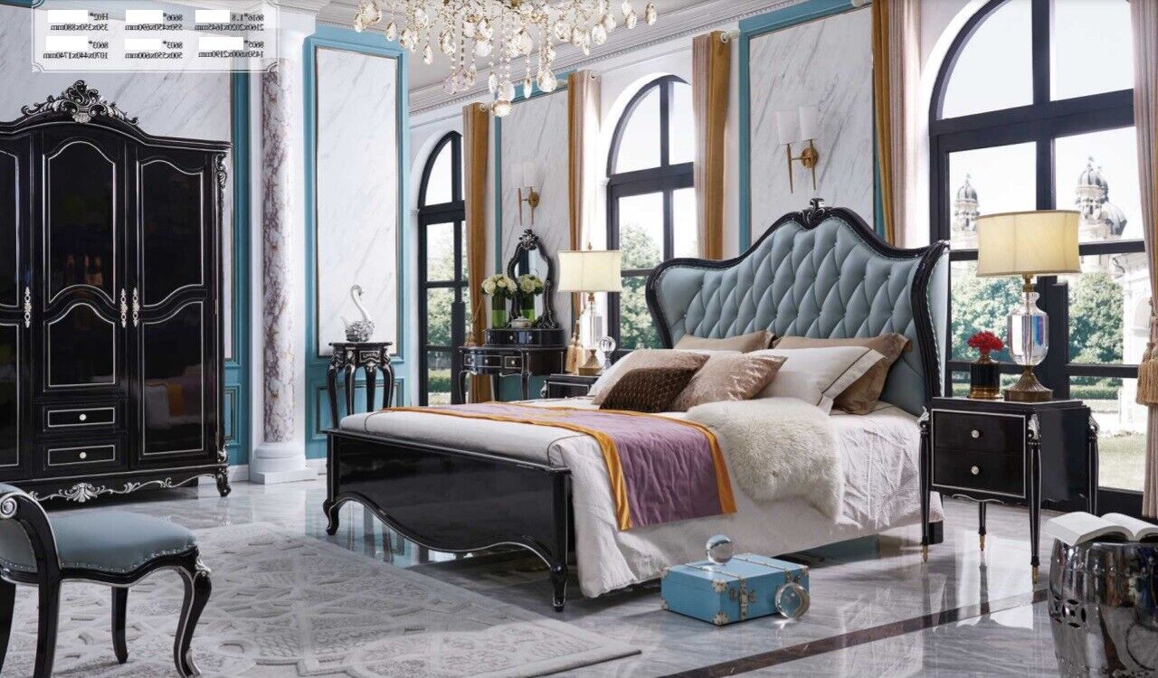 Bedroom Furniture Baroque Rococo Set 3pcs. Set Hotel Wood Leather new Furnishings