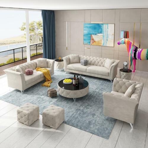 Chesterfield Set 8-piece Set Couch Upholstery Suite Side table Coffee table Sofa