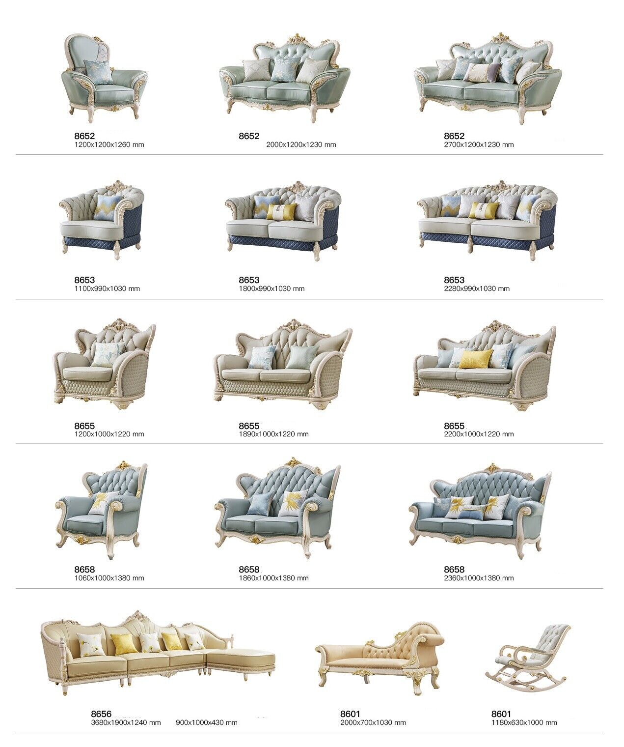 Enhance the elegance of your living room with our Classic Living Room Furniture Complete Set. This exquisite 5-piece sofa set includes a 3-seater sofa, a 2-seater sofa, an armchair, a coffee table, and a side table - all crafted from solid wood with a luxurious leather finish. The dimensions of this set are designed to provide optimum comfort and style, with seat depth of approximately 60 cm and a comfortable seat height of 44 cm. The sofa set comes in a timeless color as shown, adding a touch of sophistication to your home decor. Made from high-quality solid wood and leather, this furniture set exudes durability and luxury. Elevate your living space with this exquisite set that combines style and functionality seamlessly. Choose this Classic Living Room Furniture Set today and transform your living room into a cozy and chic retreat for relaxation and entertainment. Elevate your lifestyle with our premium furniture set now!