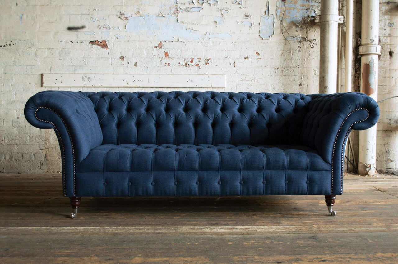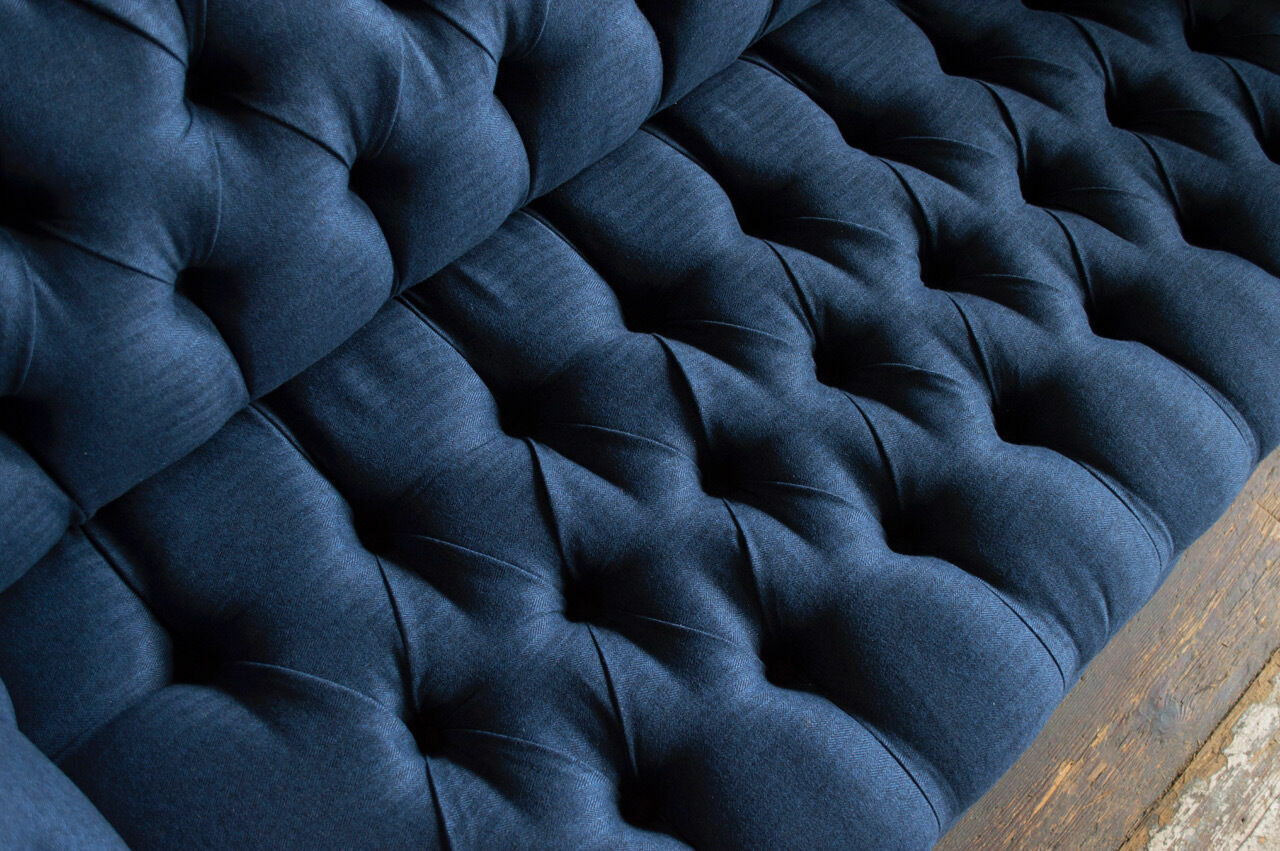 Blue Textile Chesterfield 4-Seater Designer Upholstery Sofa