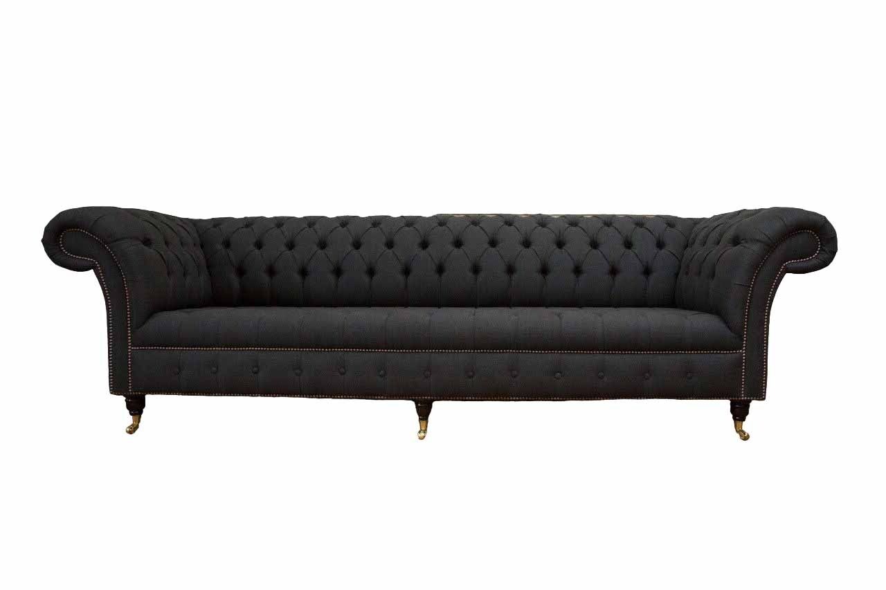 Chesterfield Sofa 4 Seater Black Fabric Living room Design Couch Upholstery