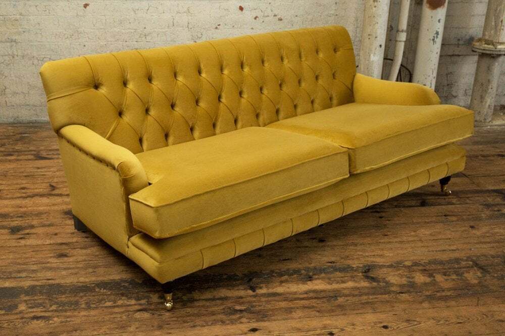 Enhance your living room with our Yellow Chesterfield Fabric Upholstery Three Seater Couch! This beautiful piece is not only stylish but also incredibly comfortable, making it the perfect addition to your home decor. Customize your couch by choosing from a wide range of colors including Mustard Yellow, Sun Yellow, and many more. You can even opt for a full leather upgrade for an additional fee. Constructed with high-quality materials such as premium fabric, this couch is designed to last. You also have the option to add a bed function with a mattress for extra versatility. With various sizing options available, including a 5-seater or a special custom size, you can personalize this couch to fit your space perfectly. Don't miss the opportunity to own this stunning piece of furniture that combines style, comfort, and quality. Upgrade your living room today with our Yellow Chesterfield Three Seater Couch!