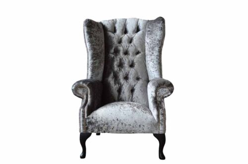 Wing Chair Chesterfield Armchair Couch 1 Seater Gray Fabric Textile new