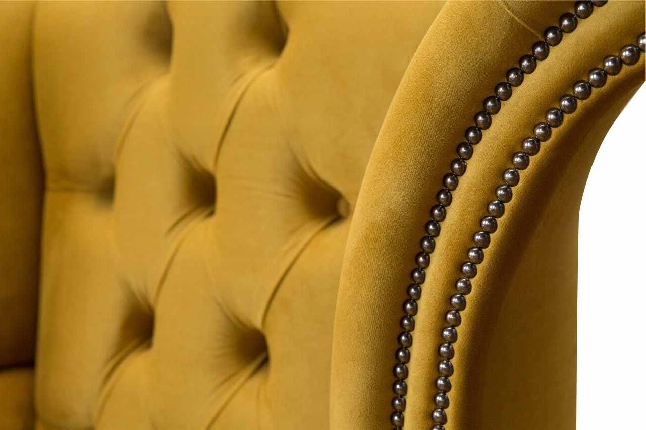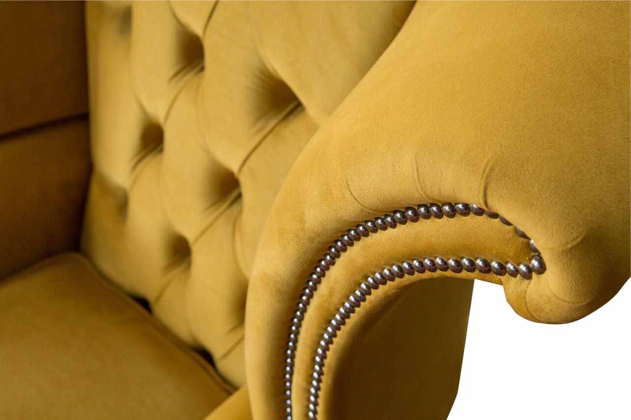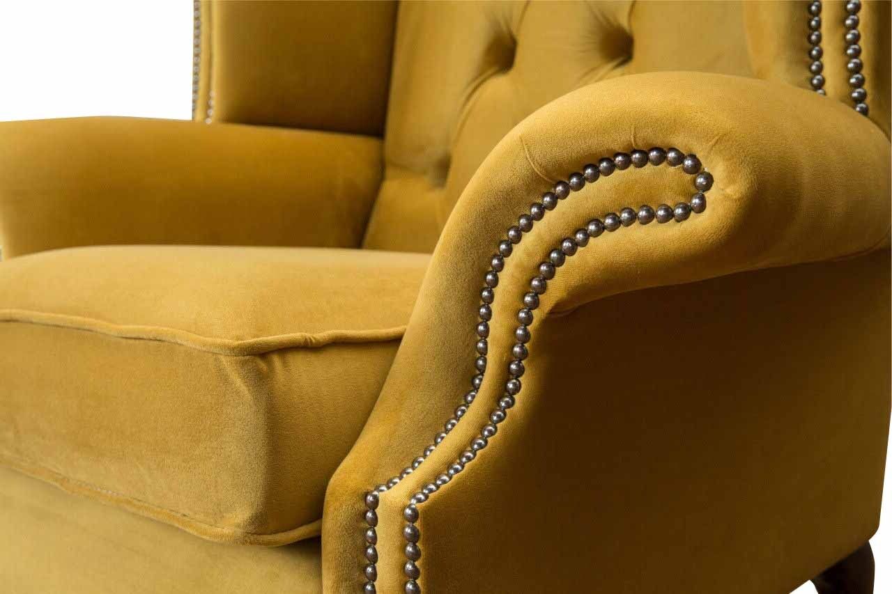 Wing Chair Armchair Yellow Design Upholstery Couch Chesterfield Textile Luxury