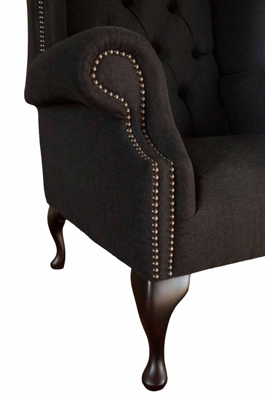 Wing Chair Armchair Seater Black Design Upholstery Chesterfield Textile new
