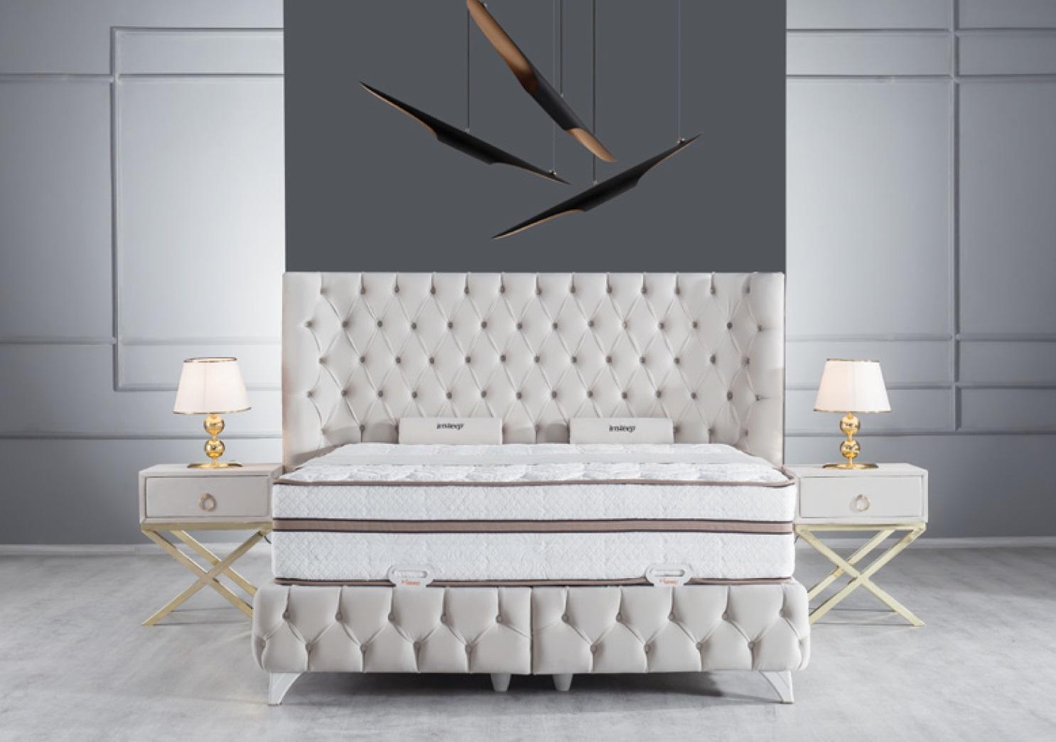 Bedroom Set White Boxspring Bed Chesterfield Elegantes 2x Bedside tables 3pcs.