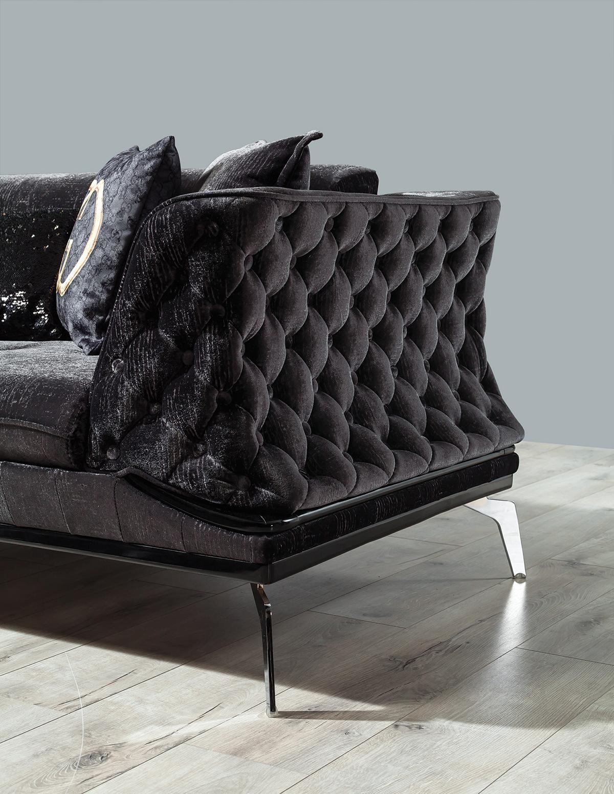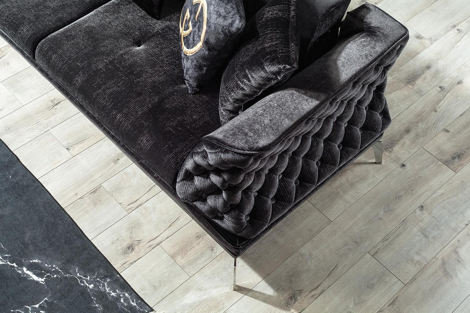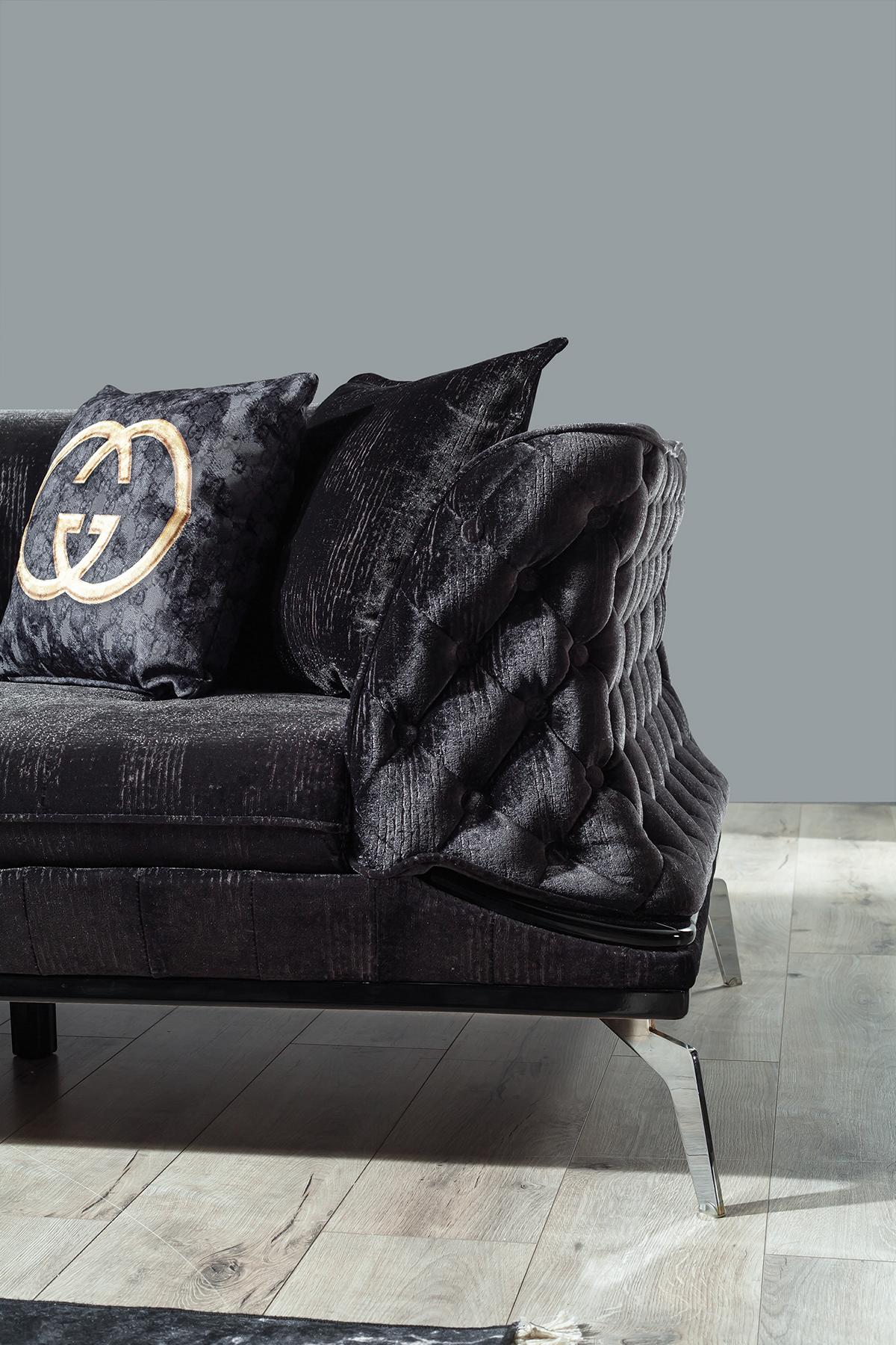 Black Couch Sofa Suite 3+1 Seat Chesterfield Living room Upholstery