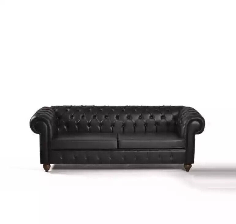 Black Chesterfield Three Seater Office Furnishings Couch Luxury Seater