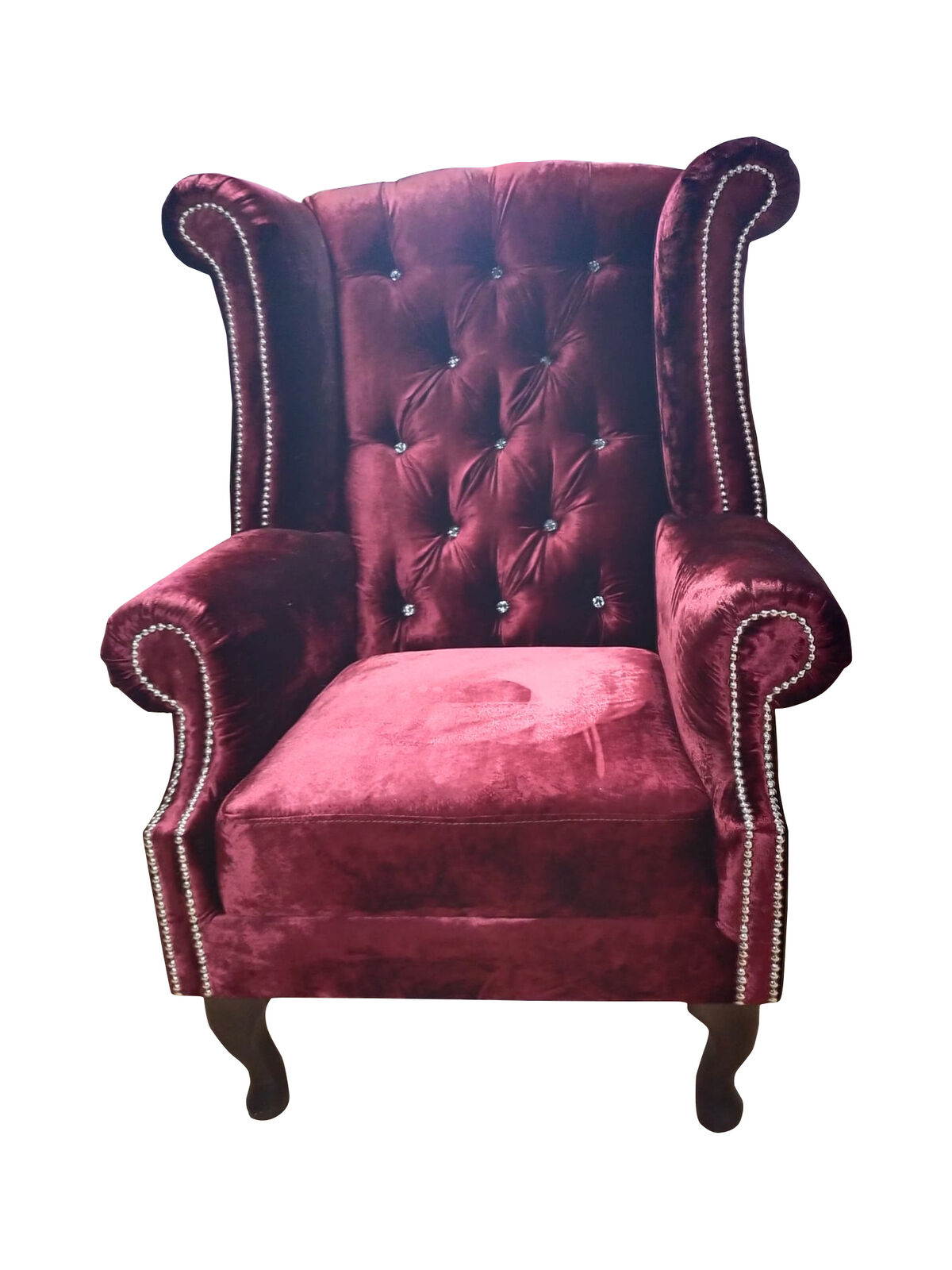 Wing Chair Chesterfield Armchair Velvet Red Couch 1 Seater Modern
