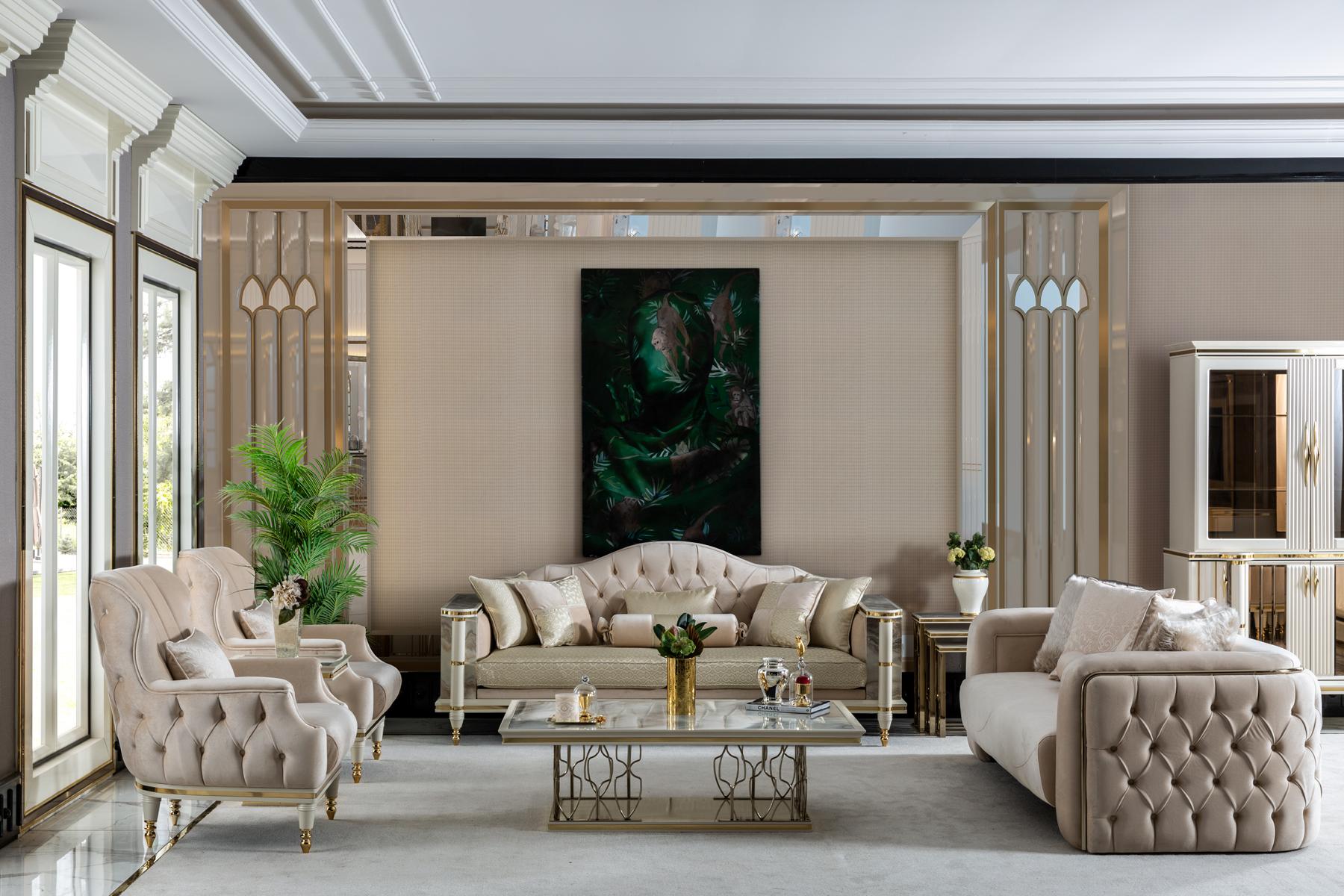 Armchair Beige Elegant Upholstery Fabric 1Seater Chesterfield Modern Living room new