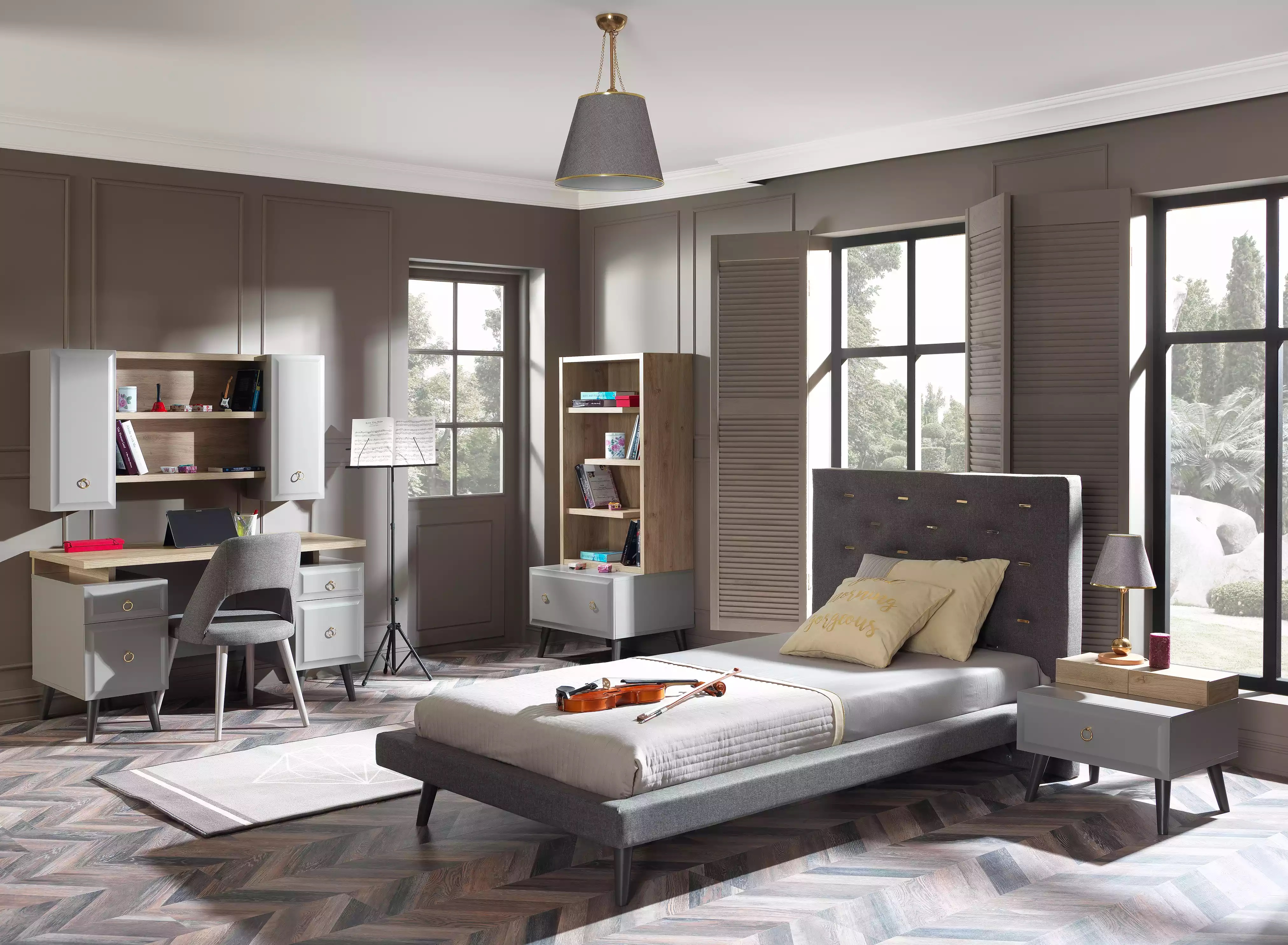Bed 100 cm Bed frame e Bed frame Childrens bed Youth bed Fabric Gray
