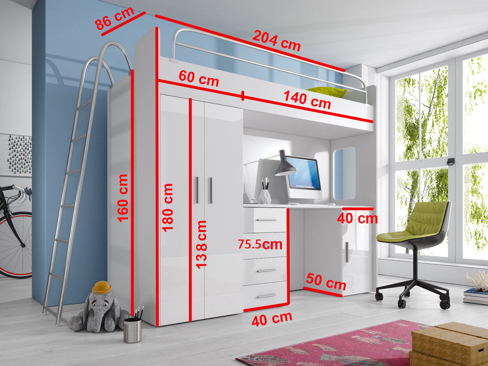 Bunk children's bed, children's bed, children's room furniture