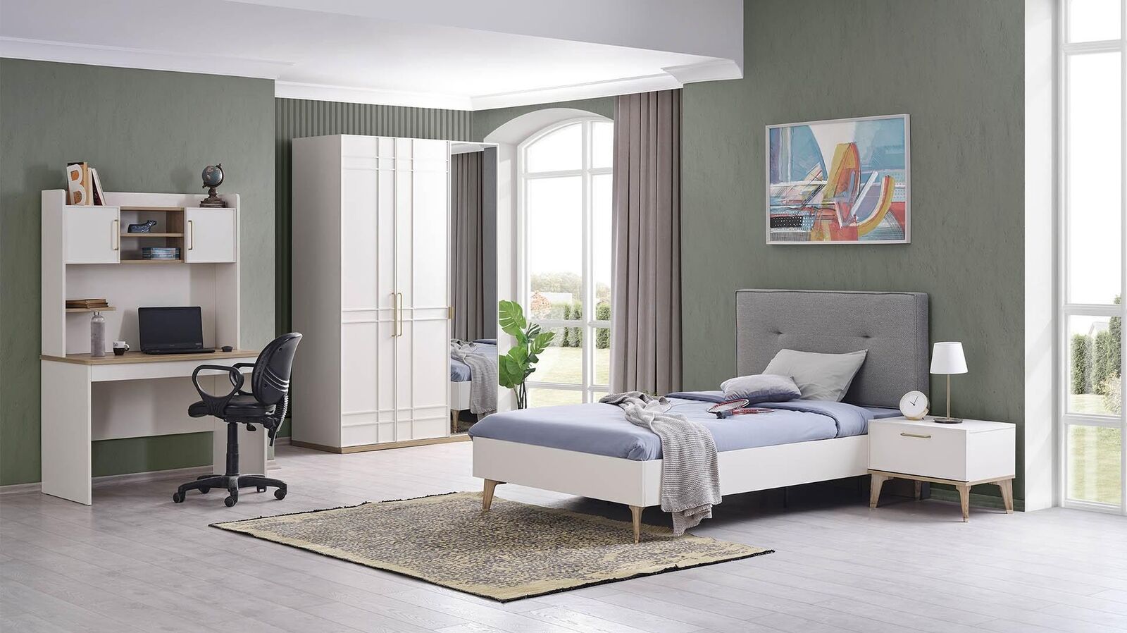 Childrens bed Bed 100 cm youth bed Wood Gray Childrens room Fabric Modern