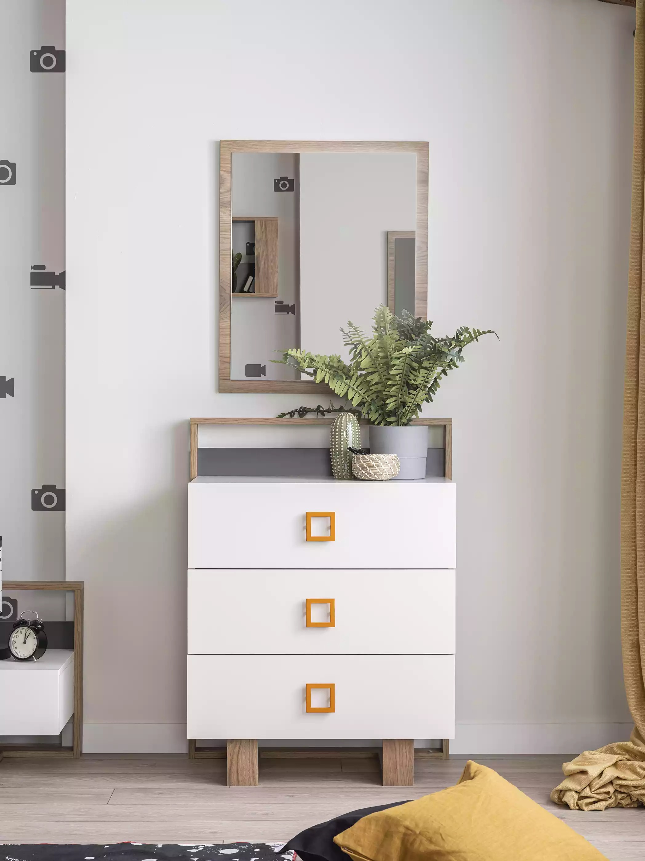 Group Chest of drawers with Mirror Chests of drawers Wood White Children's room Wardrobe Set
