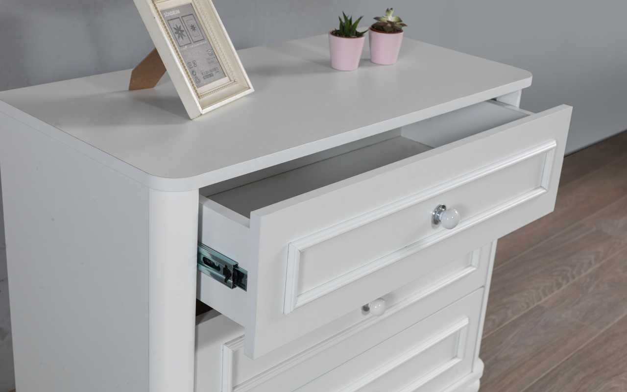 Childrens room Furniture Designer Round Mirror White Wood Luxury Chest of drawers 2pcs