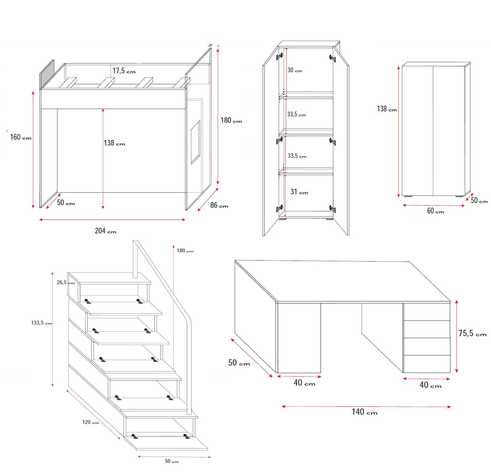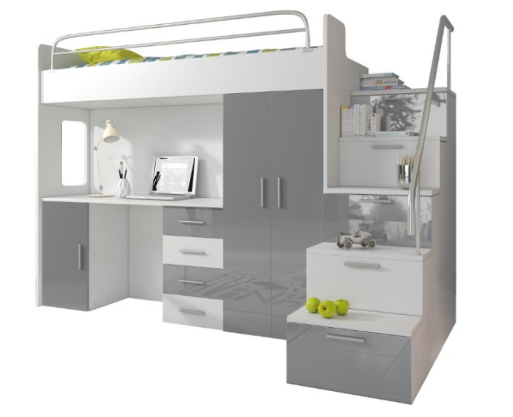 Double bunk bed Gray Table Wardrobe Multifunction Bunk Loft bed Childrens room