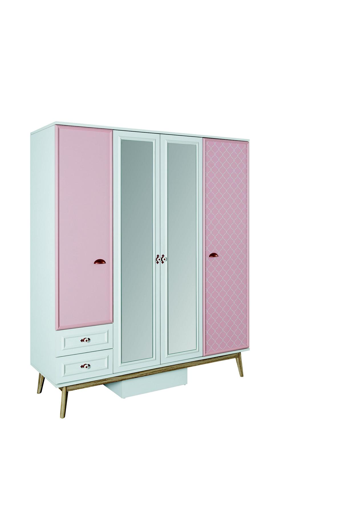 Wardrobe Childrens room Cabinets Multipurpose Wood 4 door Pink Wardrobe
