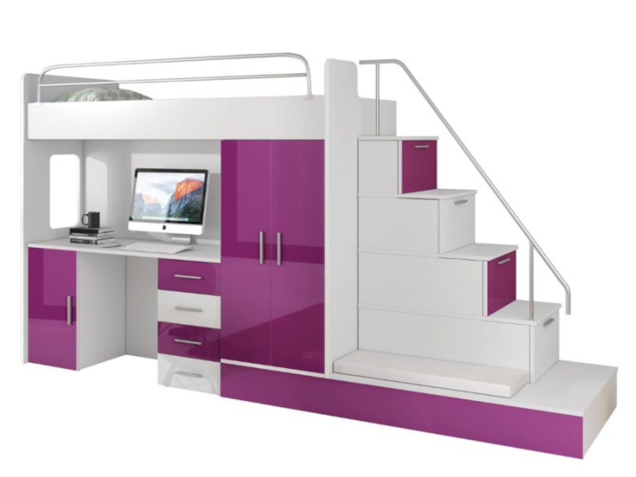 Lilac Children Loft bed Bunk bed Double bunk bed Bed High Gloss Furniture
