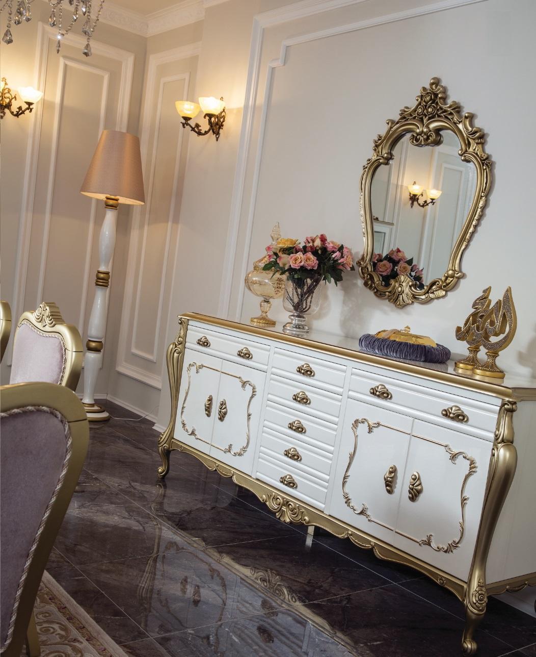 Design Dining room Set 8pcs Dining table Chair Chest of drawers Display case Mirror
