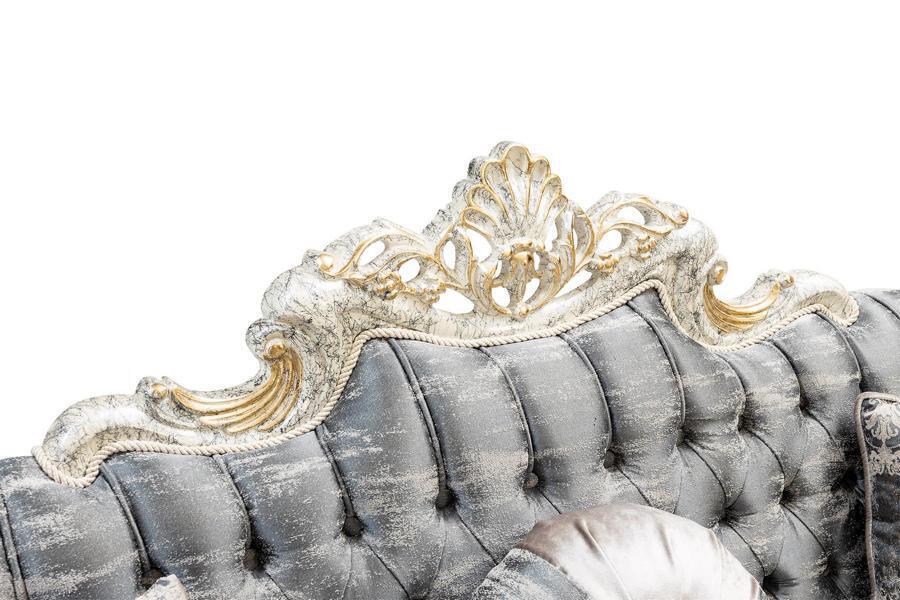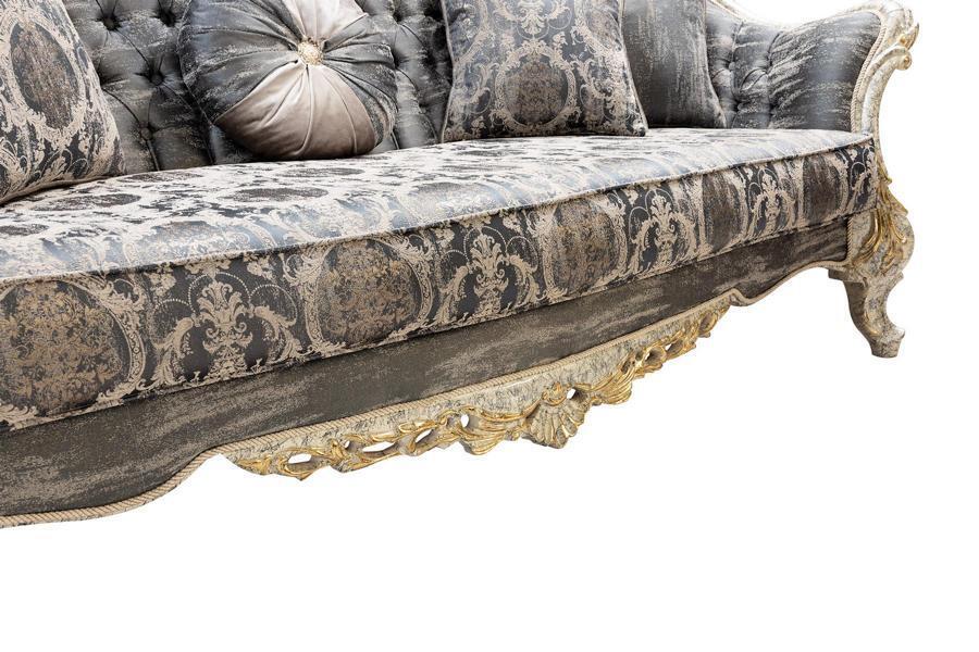 Baroque Sofa 3 Seat Gray Living room Classic Design Sofa Couch Textile