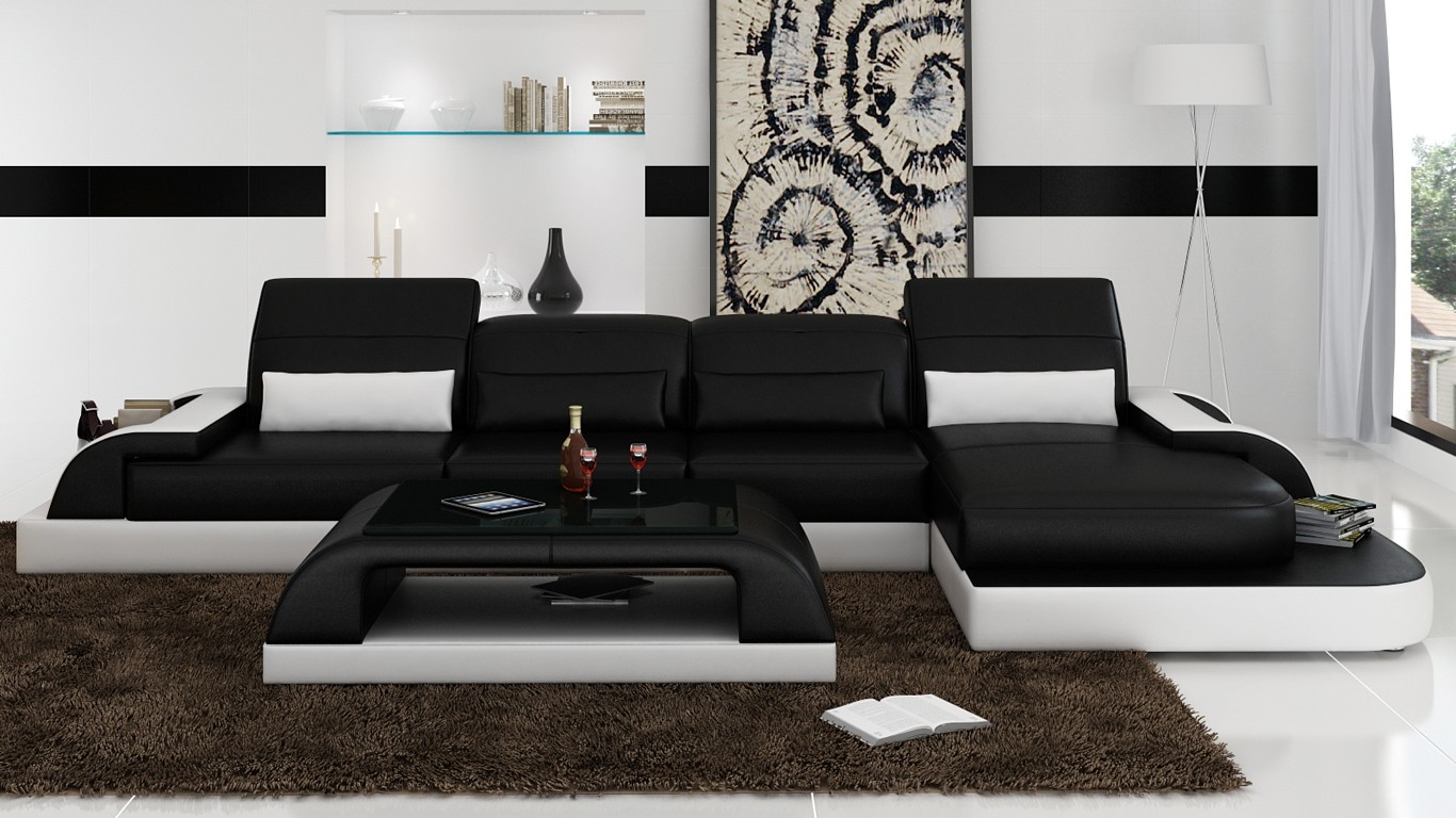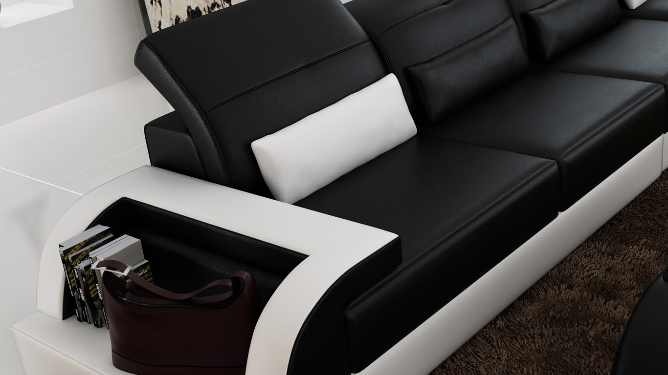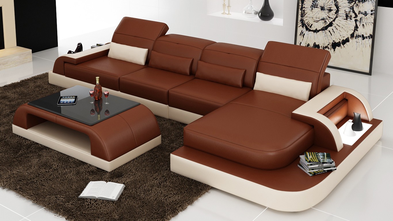 Brown L-shape Sofa Couch Upholstery Suite Living landscape Design Corner sofa Leather