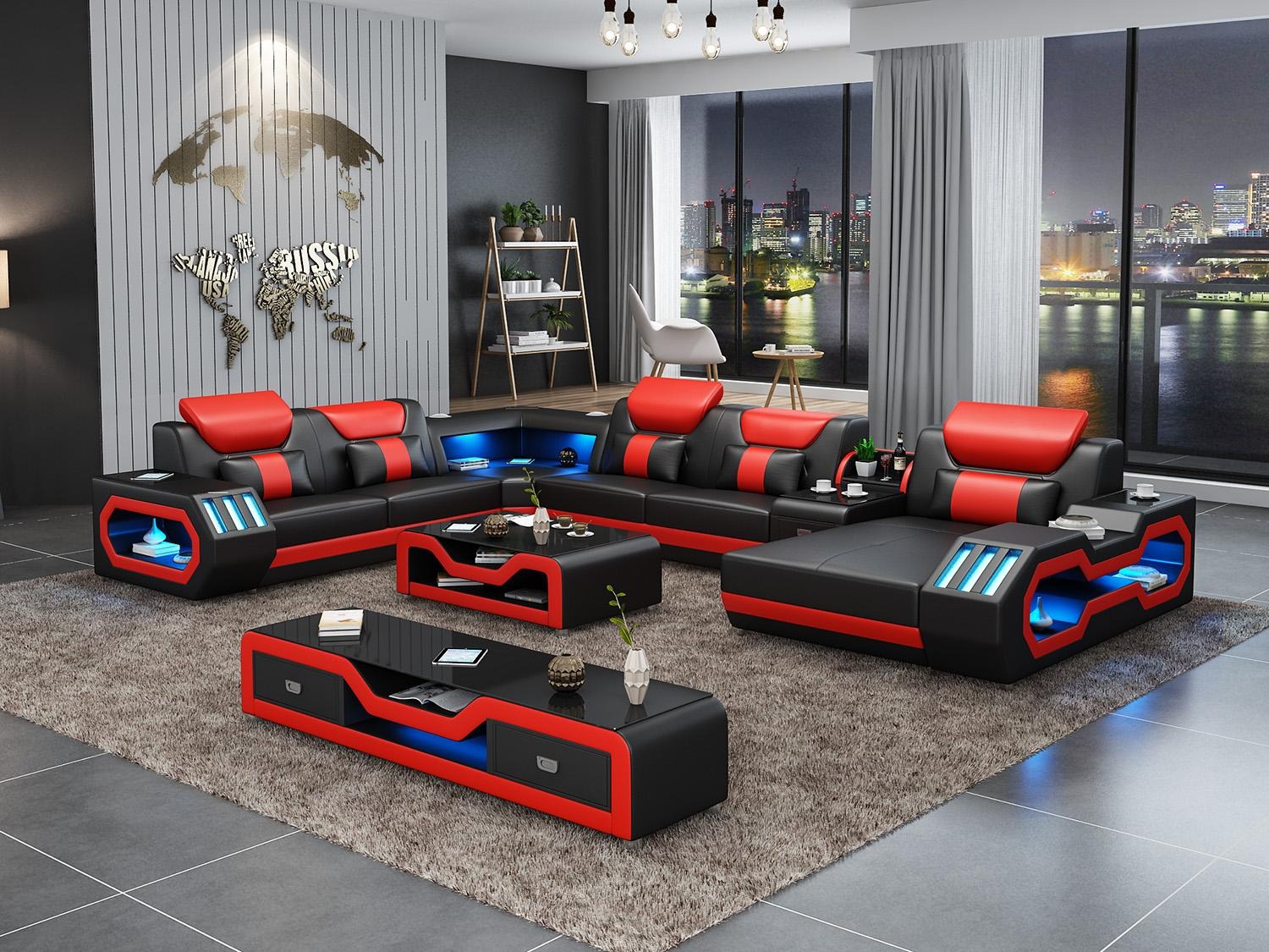 Design Big Sofa with USB Corner sofa Couch Wohlandschaft U-shape Leather Textile Corner