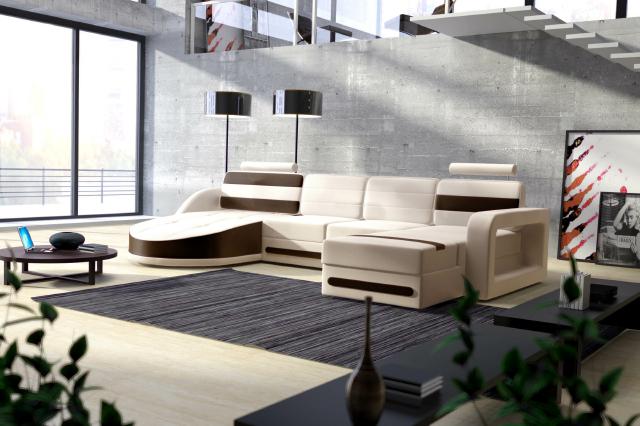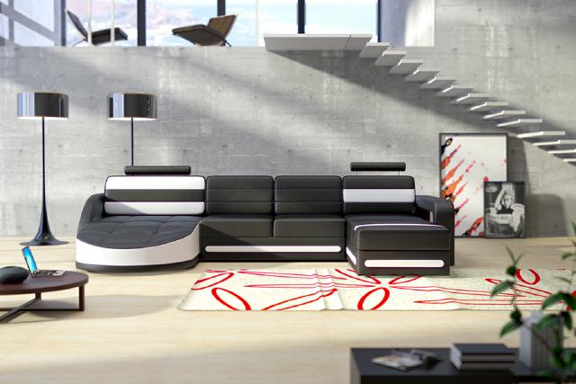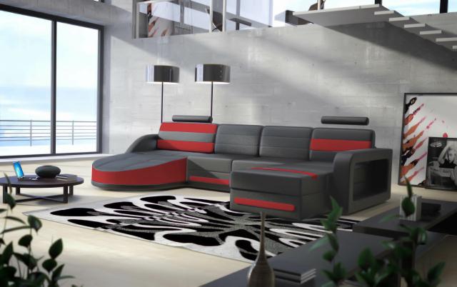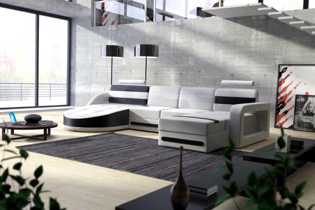 XXL Living landscape COUCH Suite DESIGN Corner sofa Black LEATHER SOFA with USB new