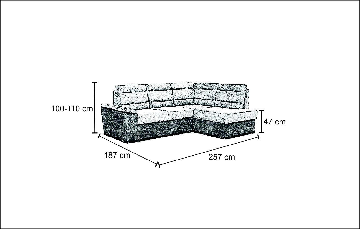 Elevate your living space with the Sofa Bed Relax Seat Furniture from XL Furniture. This versatile piece can be configured as a sofa, couch, corner sofa, or L-shape, offering both style and functionality. The upholstery is made from high-quality textile material, ensuring comfort and durability. With dimensions of 257 cm x 187 cm or 187 cm x 257 cm, this sofa bed provides ample seating and a spacious lying surface of approximately 130 x 200 cm. The seat height of approximately 47 cm and seat depth of approximately 60 cm make for a cozy lounging experience, while the overall height of 100/110 cm adds a touch of elegance to any room. Customize your Sofa Bed Relax Seat Furniture by choosing from a variety of colors such as Emerald Green, Sky Blue, Rose Gold, and more. The inner frame made of real wood guarantees sturdiness and longevity, making this piece a lasting investment in your home. Transform your living room with the modern and classic design of this sofa bed. Contact us directly for any changes in color or size to create the perfect centerpiece for your space.