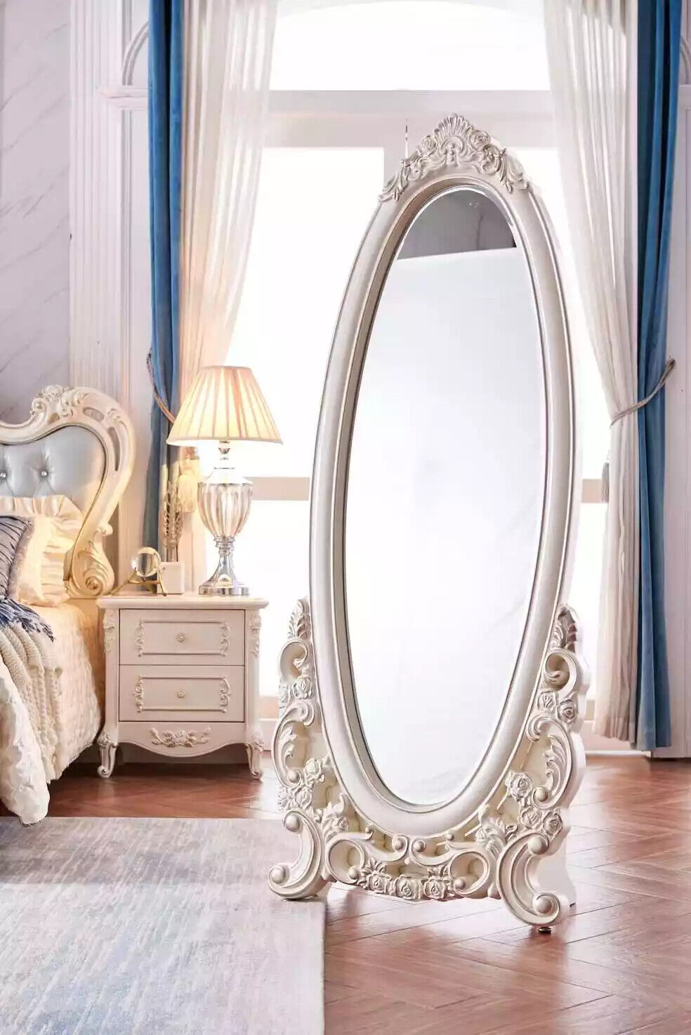 Floor mirror in the living room Wood classic white a new luxury in the interior
