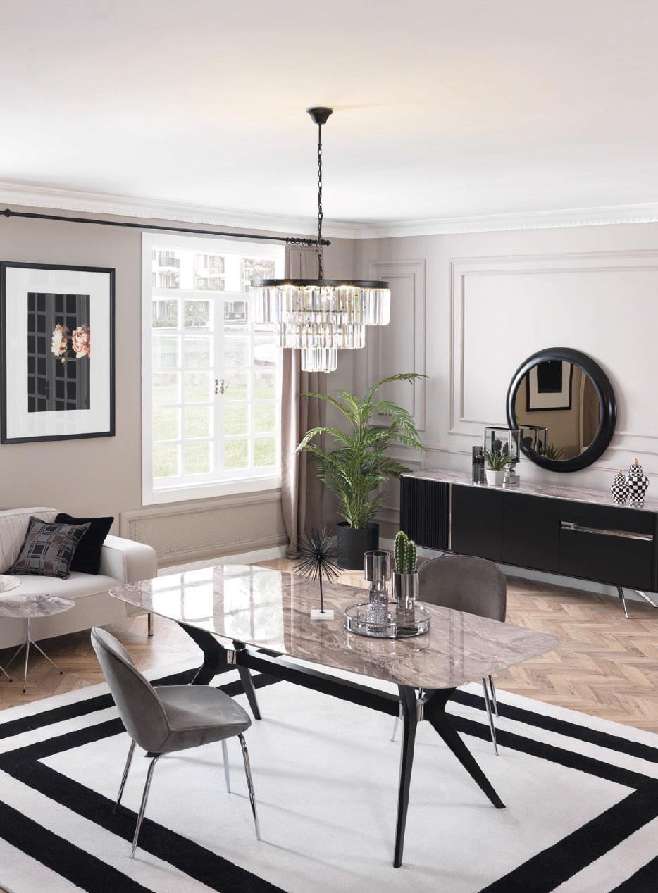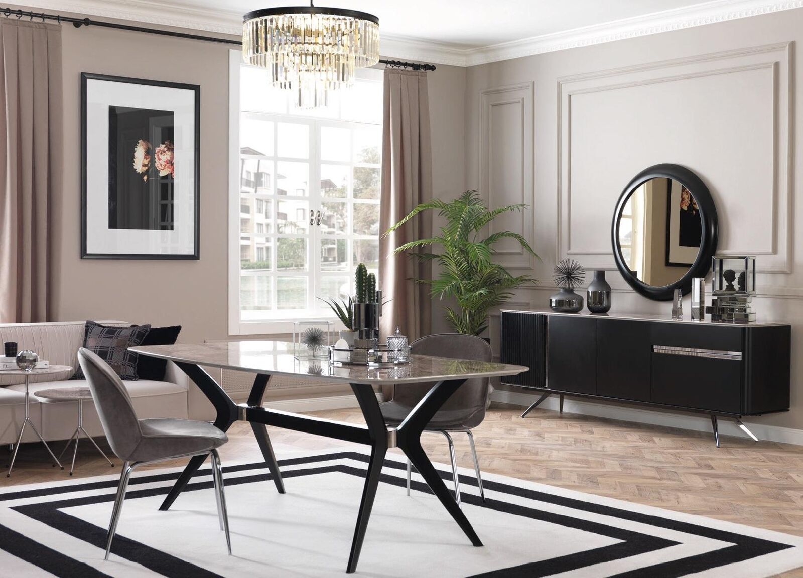 7-piece luxury loft design dining room set furniture table chest of drawers 4x chairs